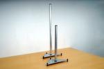Esillepanoteline kantaa valotaulut, kirjat, taulut, levyt ihan kaiken. Tukeva teräsjalka jossa on riitävästi painoa ja kolmipistejalka joka saa telineen aina seisomaan keikkumatta.