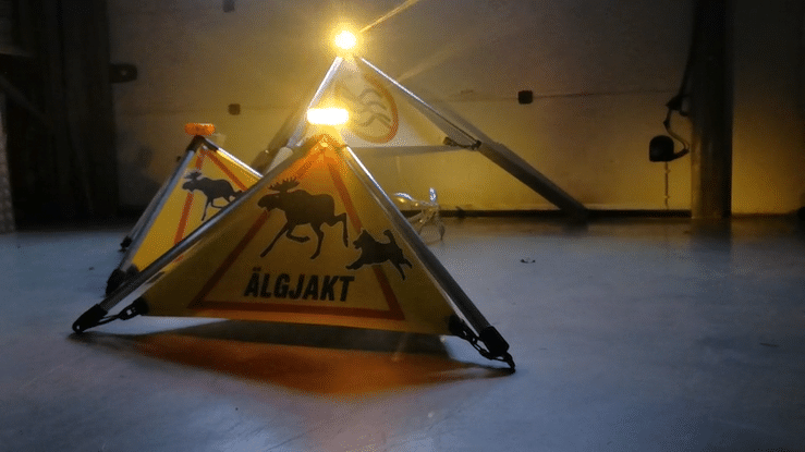Erittäin kevyt kolmio-kyltti jonka kokoat muutamassa sekunnissa (katso video). Vähäinen paino ei haittaa telineen tukevuutta koska se on suunniteltu aerodynaamiseksi, helppo nostaa esille varoittamaan tarpeen tullen.