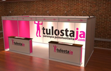 Modulirakenne on siitä helppo että voit koota messuosaston uudella lailla tapahtumasta toiseen. Pienentää, suurentaa, rakentaa kulmia ja aina uusia itseäsi. Voit valita valmiista malleistamme kotisivulla tai ottaa meihin yhteyttä niin teemme ilmaisen 3D piirrustuksen rakenteista, joiden perusteella voit päättää onko hinta ja ratkaisu sinulle oikea.